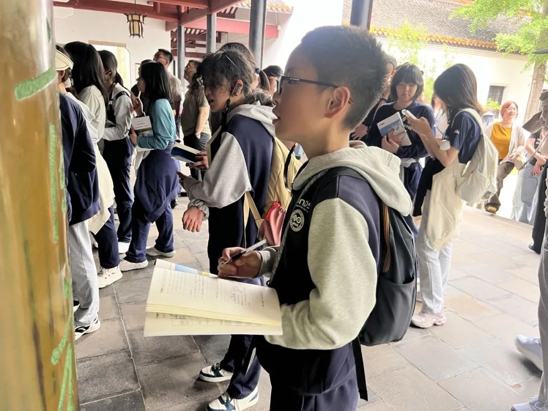 西溪湿地的摇橹船上,龙娃们拨开两岸的芦苇,听船娘唱起婉转的江南小调。水面倒映着粉墙黛瓦,不时有白鹭掠过,宛如一幅流动的水墨画。鲁迅故里的百草园与三味书屋,承载着课本里的童年记忆,大家模仿着 “早” 字的故事,在木桌前摇头晃脑,感受文人的风骨。沈园的断壁残垣间,陆游与唐琬的爱情故事令人唏嘘,龙娃们轻声吟诵《钗头凤》,为那段遗憾的过往叹息。柯岩的奇石、良渚古城遗迹的玉琮,诉说着远古文明的密码。