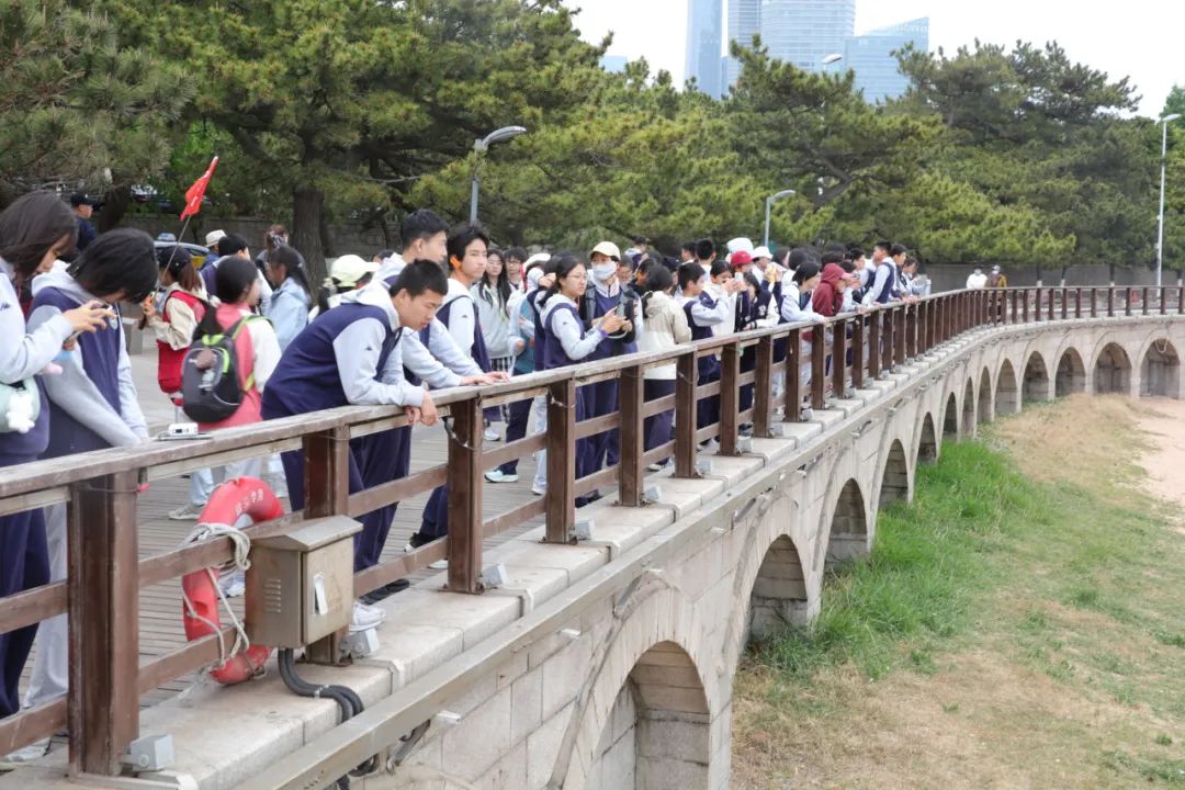 崂山北九水的山水画卷徐徐展开,清澈的溪流在巨石间奔腾跳跃,龙娃们沿着木栈道拾级而上,呼吸着富含负氧离子的清新空气。“潮音瀑” 前,瀑布如白练般倾泻而下,水雾扑面而来,大家在这里感受着大自然的鬼斧神工。八大关的异域风情与大鲍岛的历史韵味相映成趣,龙娃们漫步在八大关的林荫道上,欣赏着俄式、英式等风格各异的建筑;而大鲍岛充满年代感的里院建筑和热闹的特色小店,则让大家触摸到了青岛的市井烟火。