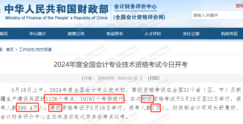 2024年,初级资格考试报名人数为309.4万人,高级资格考试报名人数为7万人。
