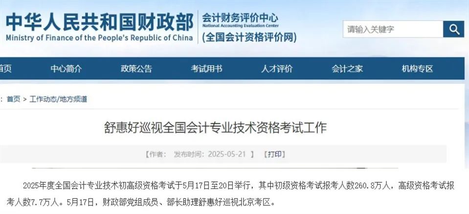 财政部:2025年高级考试报考人数曝光!