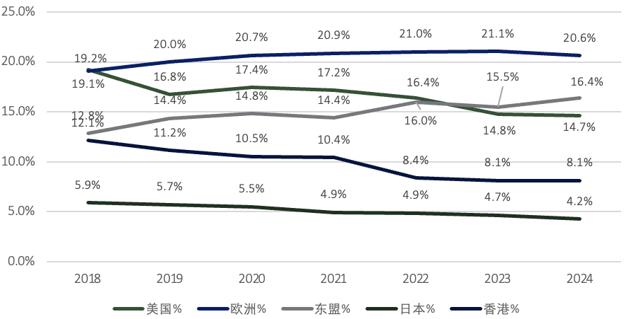 图:2018年以来中国出口目的地市场呈现多元化格局