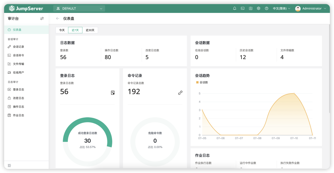 ▲ 图5 JumpServer v4.10 LTS版本审计台操作界面