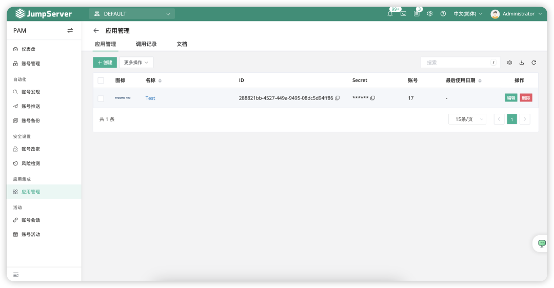 ▲图3 JumpServer v4.10 LTS版本应用管理功能界面