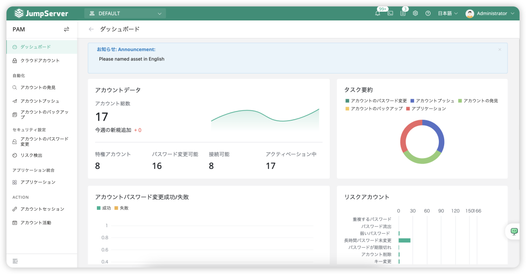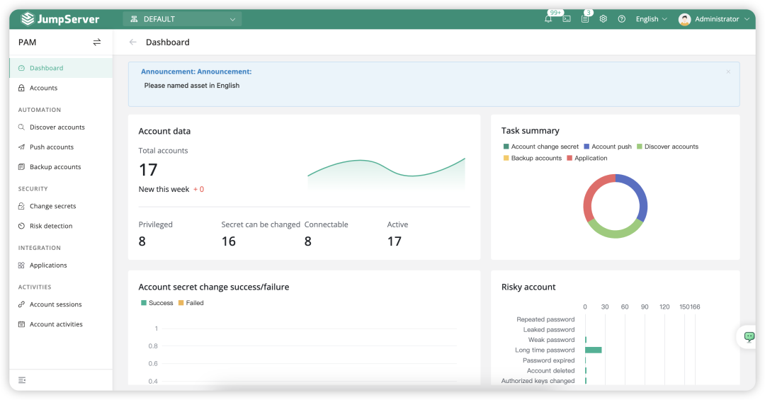 在v4.10 LTS版本中,JumpServer开源项目组以特权账号管理(即Privileged Account Management,简称为PAM)为核心,通过精准身份验证筑牢安全防线,同时进一步提升操作界面的用户使用体验,并且实现多语言适配以及与国际合规标准的对接。