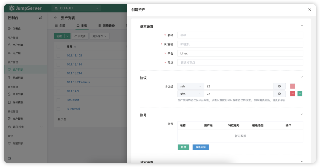 ▲图6 JumpServer v4.10 LTS版本资产操作界面(抽屉式)