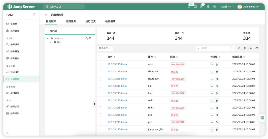▲图2 JumpServer v4.10 LTS版本账号风险检测功能界面