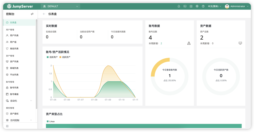 ▲图1 JumpServer v4.10 LTS版本PAM功能界面