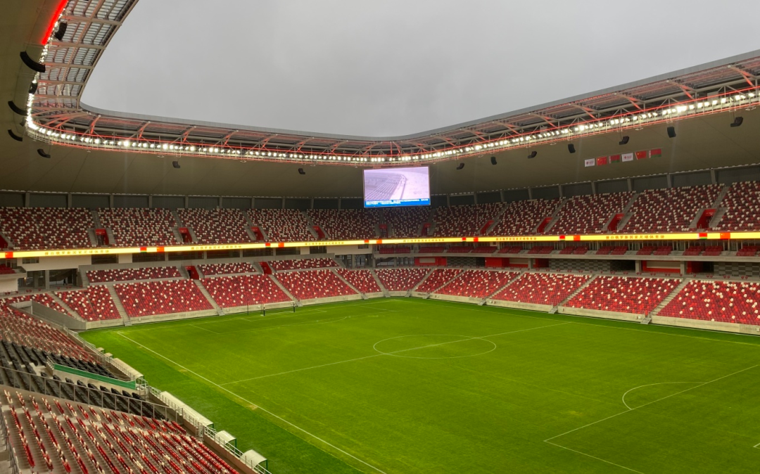 白俄罗斯国家足球体育场占地12.43公顷,总建筑面积4.8万平方米,可容纳3.3万名观众,是中国对外援助的标志性工程之一。艾比森为体育场打造计分屏、看台屏两大显示系统,采用户外爆款产品A系列,具备10000nit超高亮度与高刷新率,确保户外复杂天气环境下画面清晰稳定。