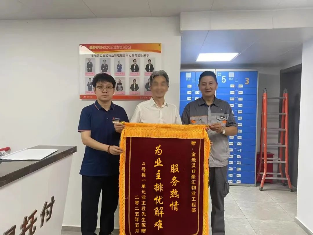 没多久,业主因事外出,5月19日业主再次回到家中,第一时间给肖师傅送来锦旗,上面写着“服务热情,为业主排忧解难”,并表达了对物业团队的赞扬,这是肖师傅和物业团队用积极的态度和专业的服务换来的认可。