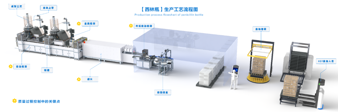 西林瓶是力诺药包的核心产品之一。通过技术创新、管理革新和智能设备的深度融合,力诺药包在西林瓶生产车间构建了覆盖生产、检测、包装的全链条质量闭环,以下是工艺流程中的核心质量控制点: