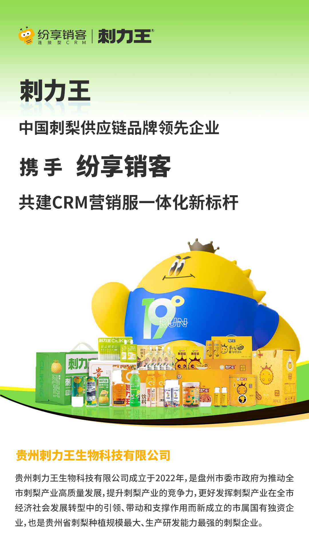 近日,中国刺梨供应链品牌领先企业刺力王与纷享销客正式达成合作,双方将基于刺梨产业链一体化数字管理平台建设展开合作,推动刺力王数智化创新升级。