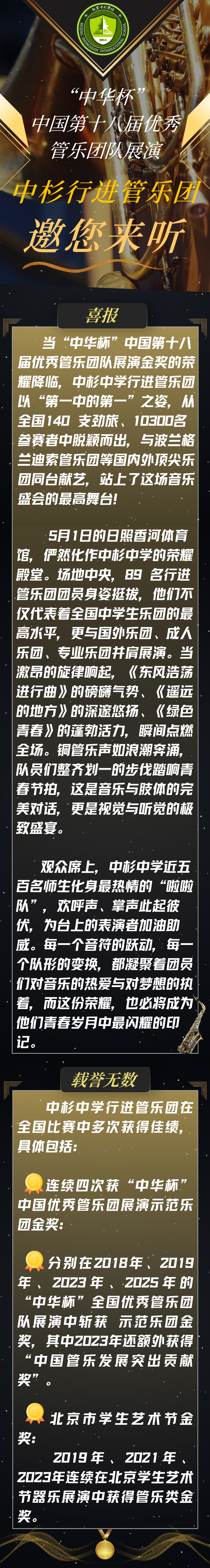 啊,行进管乐!你就是荣誉的象征!要知道,荣誉从来都没有捷径可走,唯有历经时间的磨砺,才能收获成功的消息,而你就是在这漫漫磨砺中绽放光彩的存在!