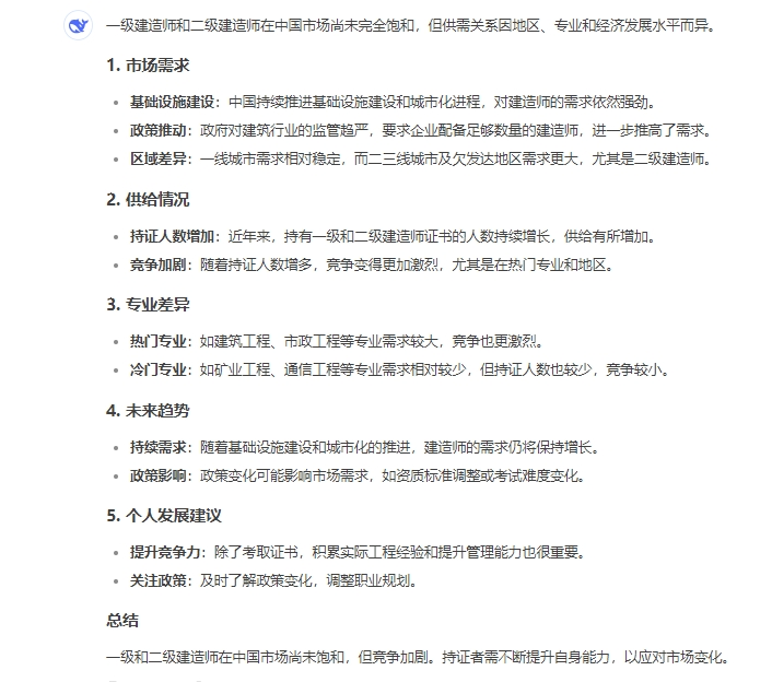 Q:一级建造师和二级建造师在中国市场是否饱和了?