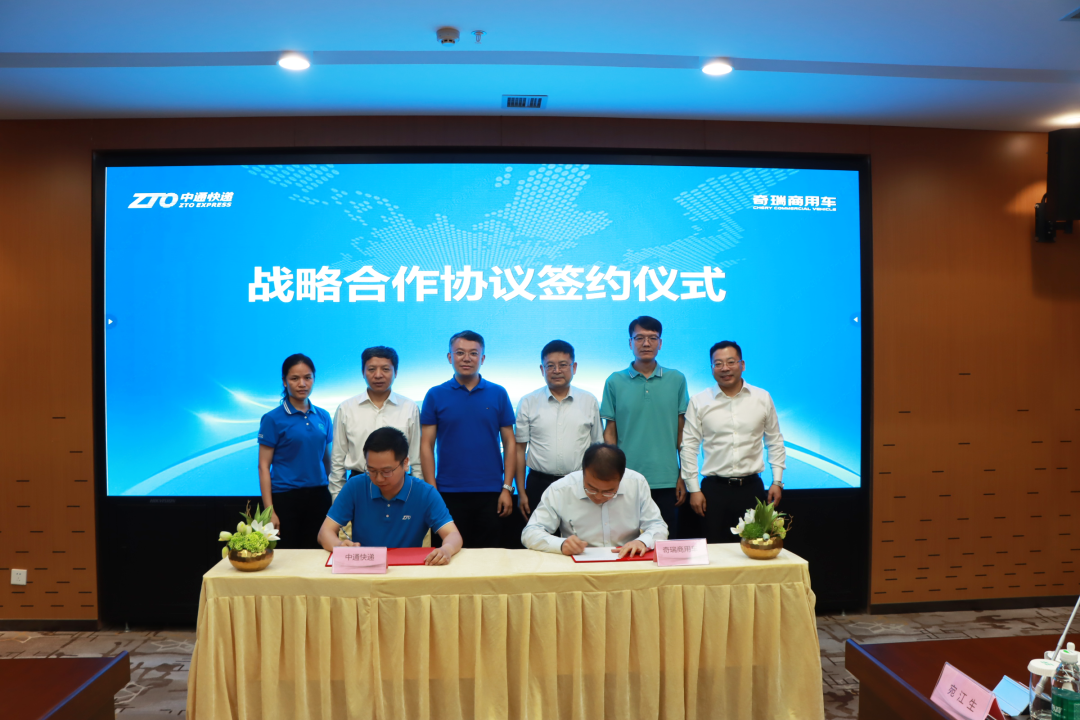 7月12日,中通快递集团与奇瑞商用车(安徽)有限公司在安徽芜湖签署战略合作协议。中通快递集团执行总裁朱晶熙,奇瑞控股集团执行副总经理、奇瑞商用车总经理鲍思语出席签约仪式。