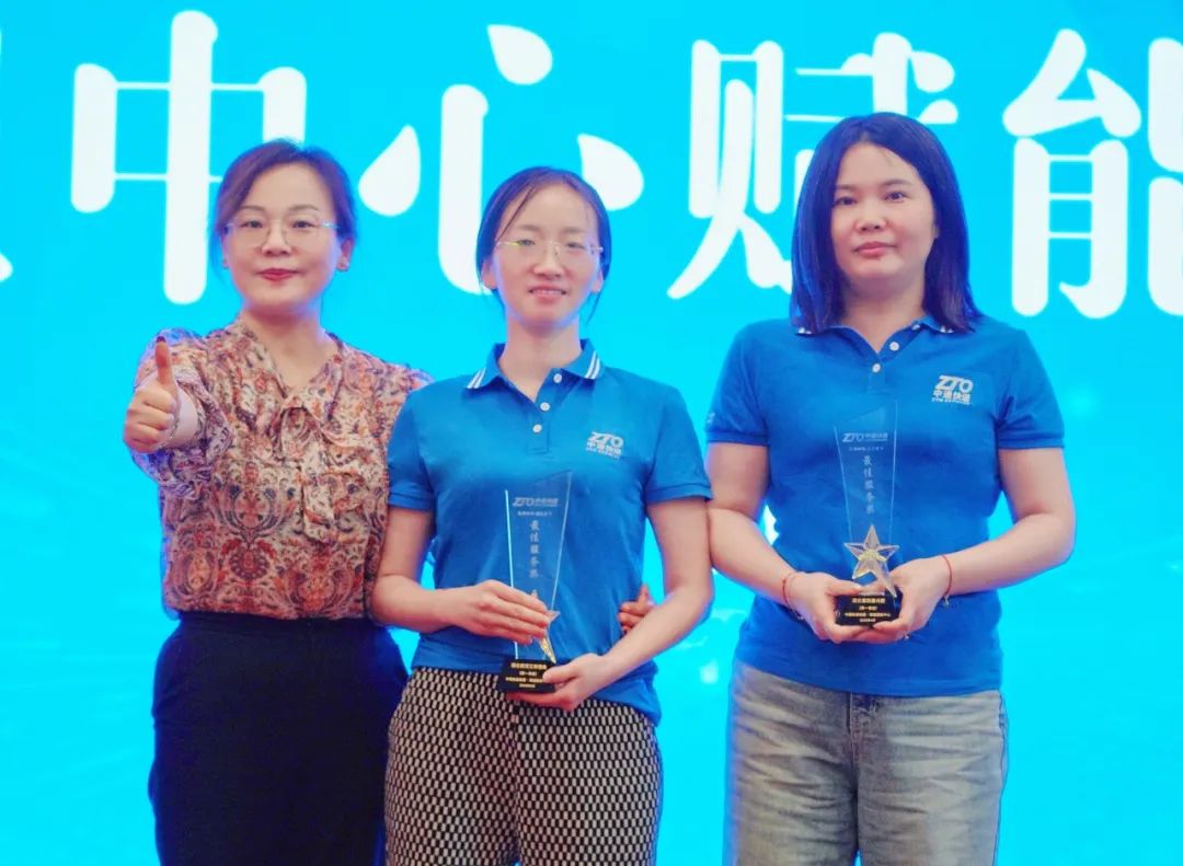 会上,总部营运中心服务质量部副总监程宗玲为第一季度服务数据优异的网点 —— 湖北武汉江岸堤角网点及襄阳襄州西网点送上2025一季度“客户服务全国TOP100网点”奖杯。