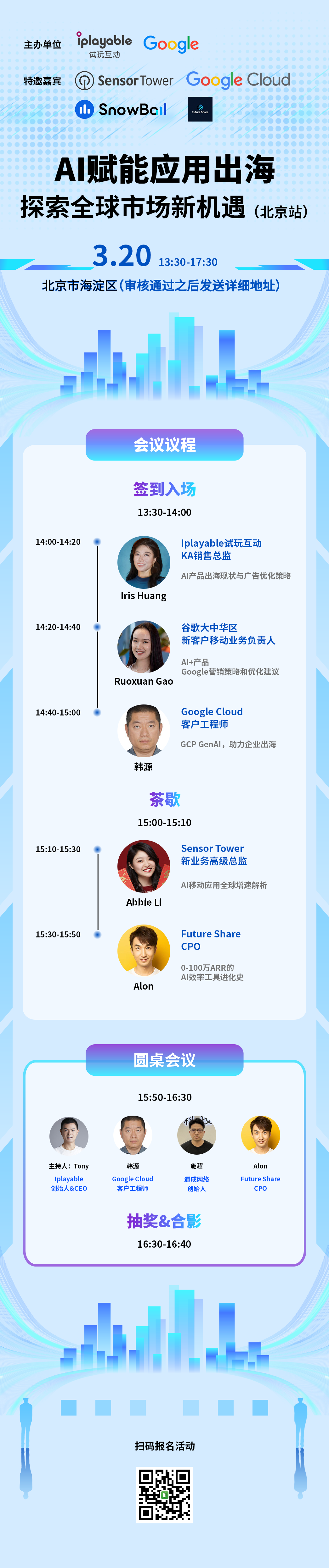 2025年3月20日下午,由Iplayable试玩互动联合 Google Ads 主办,携手 Google Cloud、Sensor Tower、道成网络、Future Share 出海生态伙伴,隆重举办主题为「AI赋能应用出海:探索全球市场新机遇(北京站)」的线下分享会!