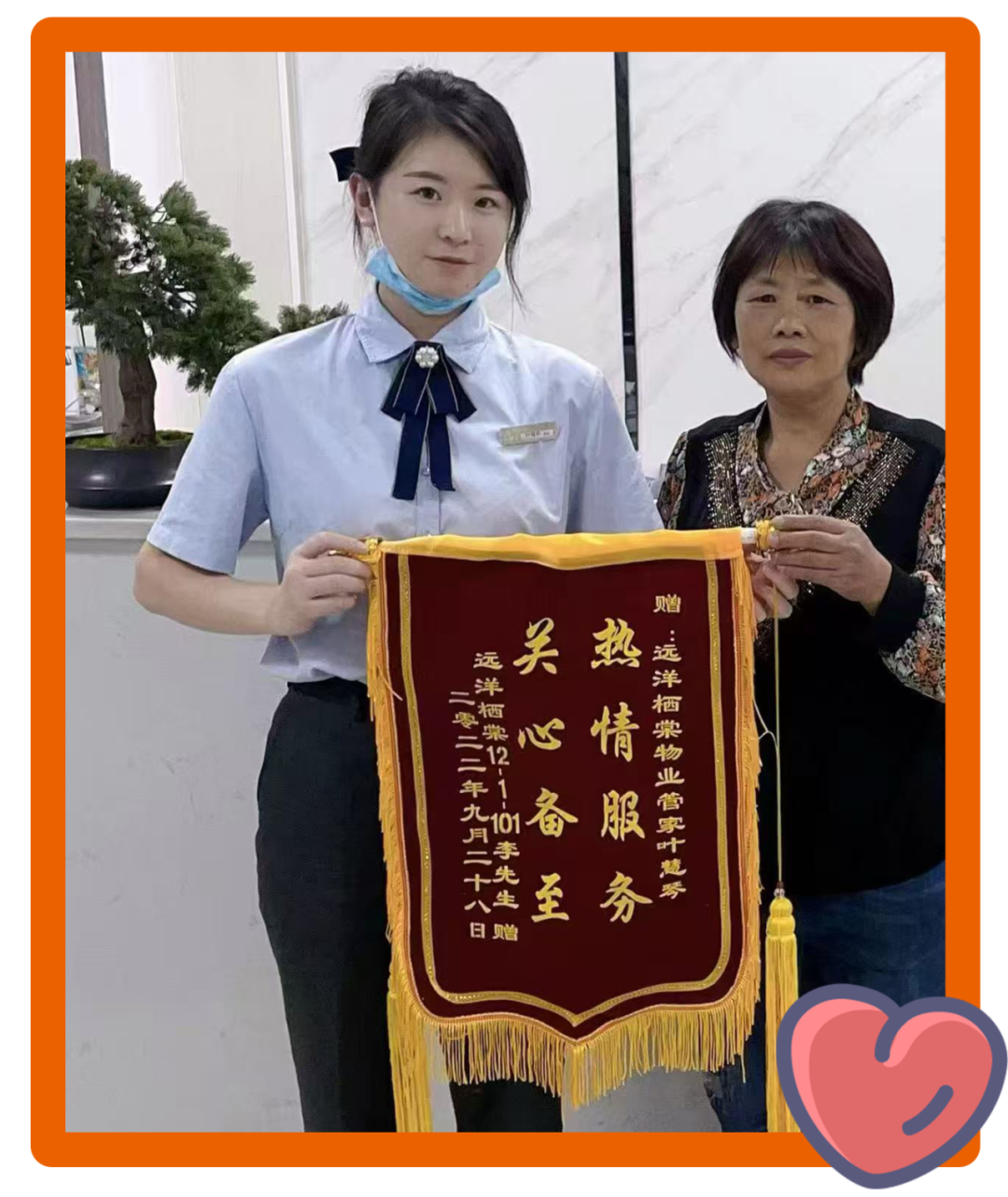 李先生的母亲刚搬来栖棠同住,面对新环境,老人难免遇到一些生活上的小困扰。因为子女工作忙碌,阿姨遇到问题,总是第一个想到找管家叶慧琴。无论是缴纳水费、充值燃气,还是学习使用智能手机,叶慧琴总是不厌其烦,一遍又一遍地耐心讲解和操作示范。这份细致和用心,让老人倍感温暖和安心。李先生看在眼里,感激在心,特意制作了一面锦旗,委托母亲送到小叶手中,对她贴心周到的服务表示由衷的满意。