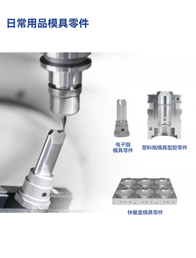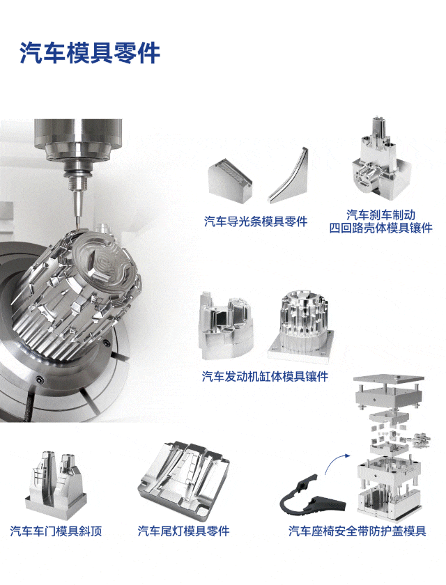 北京精雕根据各个行业的零件特点、工艺、精度及效率要求,形成成熟、稳定的行业解决方案,并可依据行业客户的需求快速实现一站式交钥匙服务。 尤其在多个行业的模具零件生产中实现广泛应用,包括:汽车模具零件、手办模具零件、电子消费品模具零件、日常用品模具零件、精密电极、刀具刀片模具零件、整套模具等。
