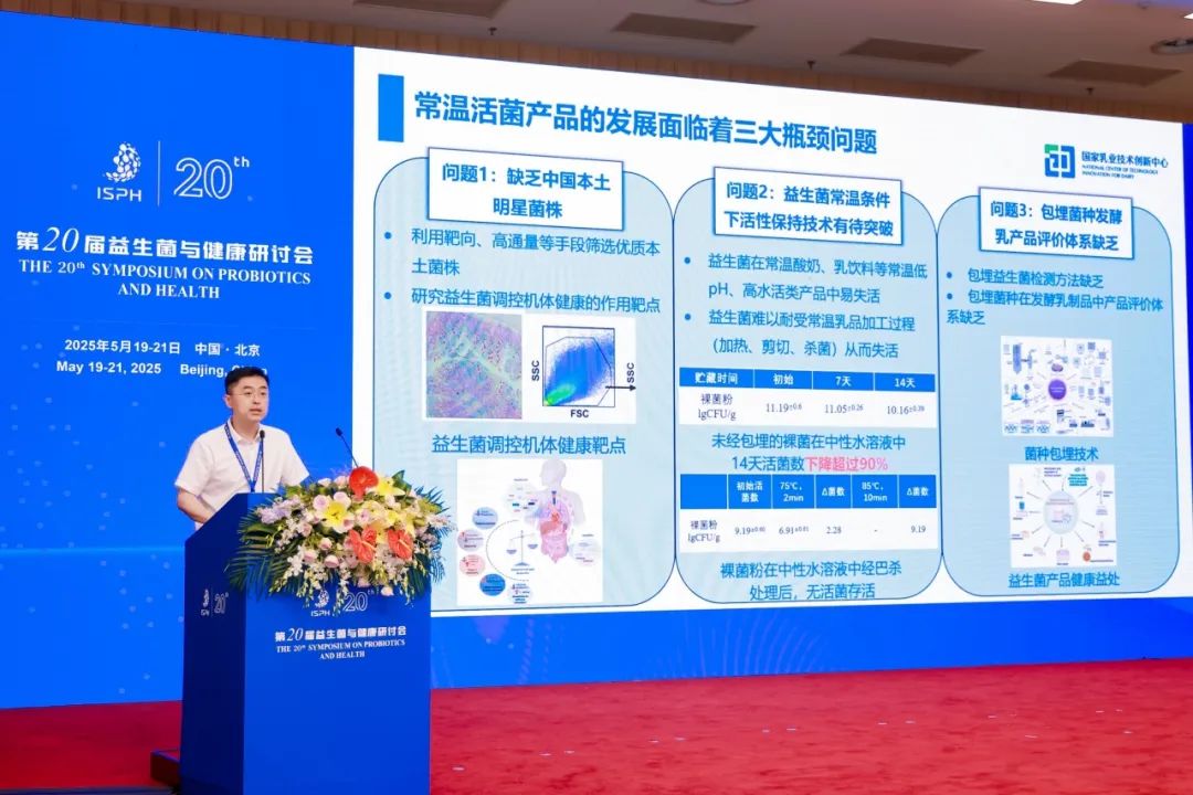 2025年5月19日-21日,由中国食品科学技术学会主办的第二十届益生菌与健康研讨会在北京召开。伊利集团在此次会议上重磅展示了其益生菌创新成果:全球首创“常温活菌包埋技术”以及伊利自主研发的明星菌株K56、BL-99和ET-22。