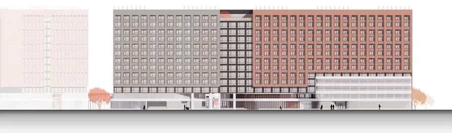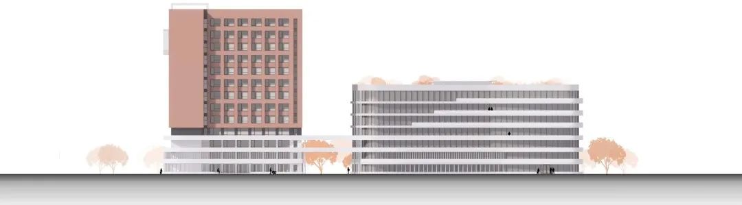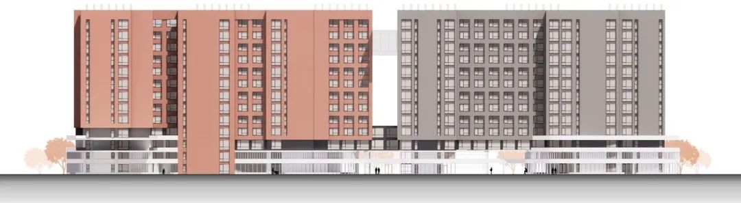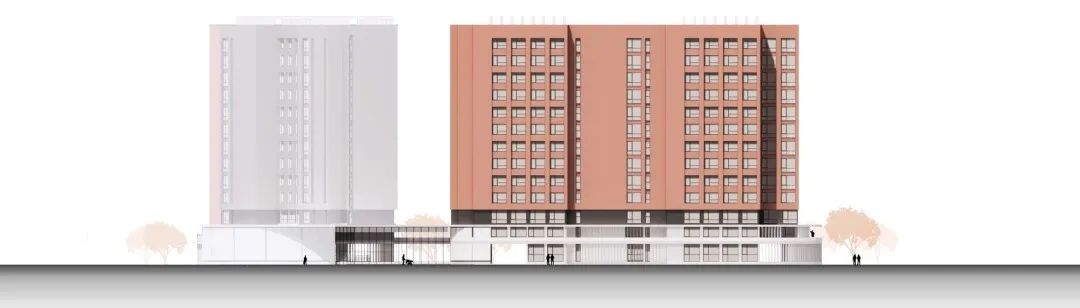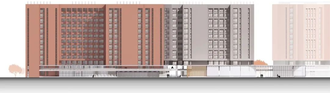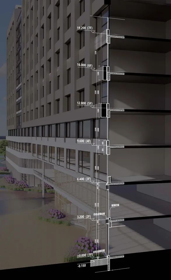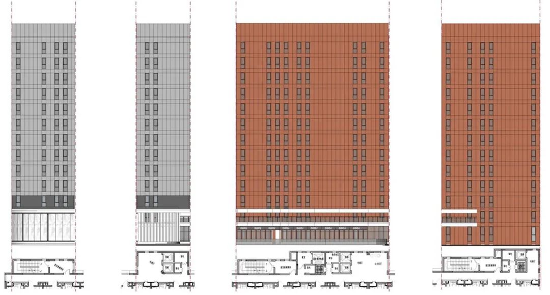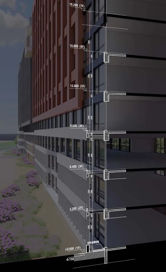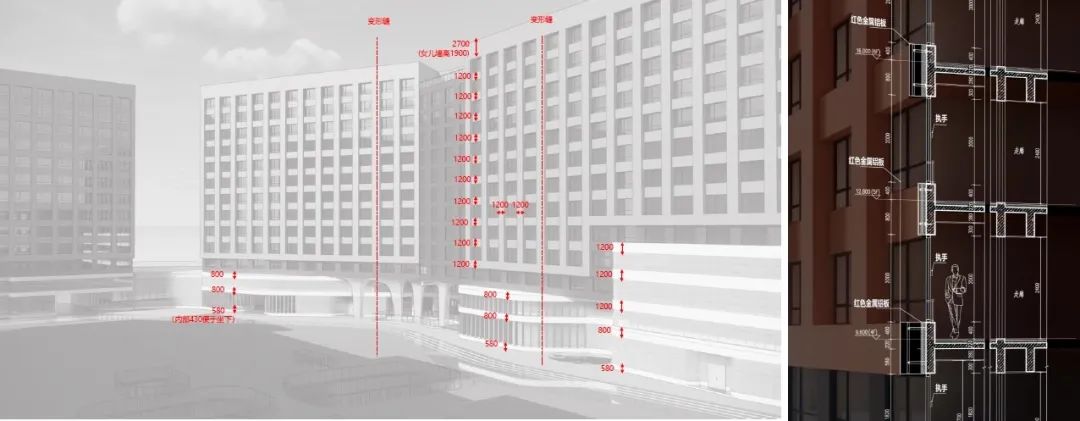 通过标准化的交通核布置,不同形式的开窗比例关系研究,保证立面开窗的精细化布置和完整的立面韵律关系。