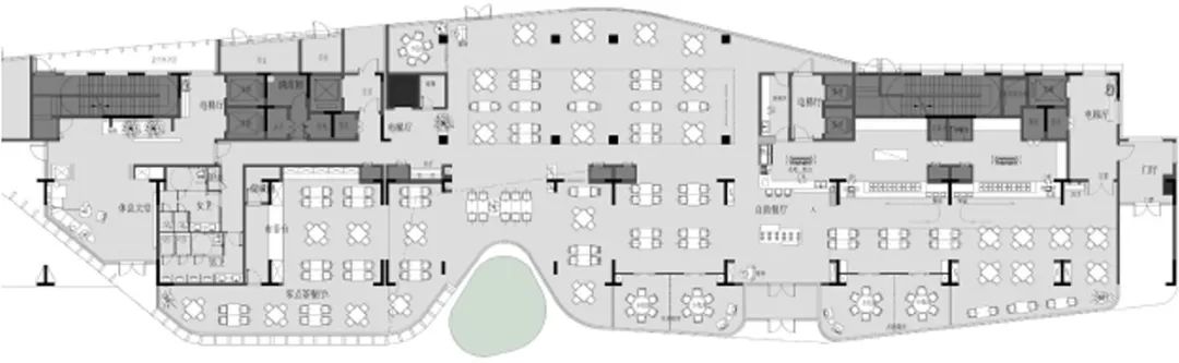 餐厅空间是社区中最重要的公共活动空间,为了提供舒适的用餐环境,餐厅位置选址社区内日照条件最佳、室内景观最佳的区域,并通过与景观团队,室内团队共同配合,不仅保证充足的就餐空间、不同的用餐方式选择、便捷的服务动线,同时更打造了惬意的用餐感受。