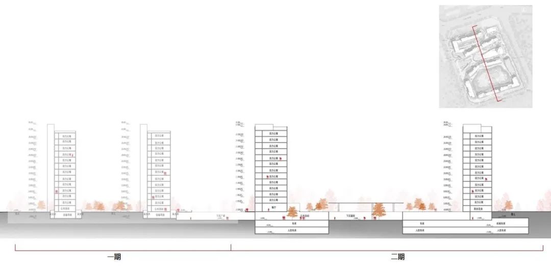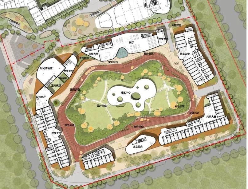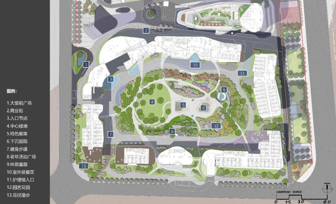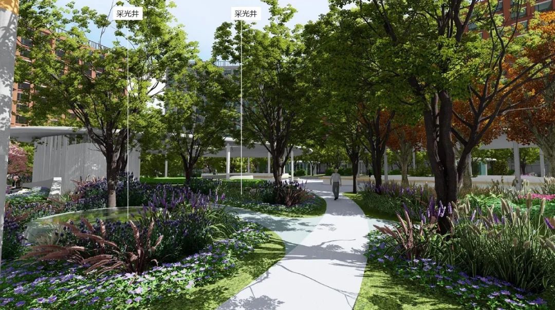 通过“城市开放”理念打破封闭性,以流动的景观轴线串联公共空间;通过“空间品质”重塑生态界面,以超大尺度花园和下沉庭院营造沉浸式自然体验;更以“当代基因”赋予建筑现代美学与功能弹性,回应长者对品质生活的深层需求——即社会生活的延续、社群生活的丰富、社区生活的完善。