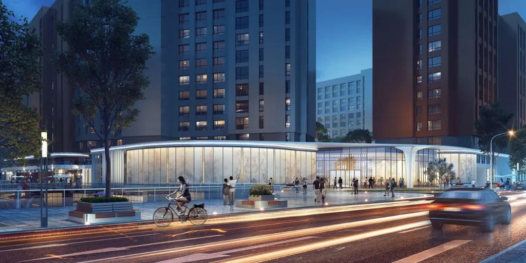 主入口空间成为整个活力街的空间导引标识,在商街入口处打造标志性城市会客厅和时光博物馆,兼具文化展览、社区服务、商业活动等多重功能,作为社区对外输出价值主张的“明信片”。