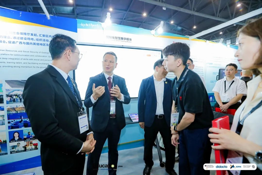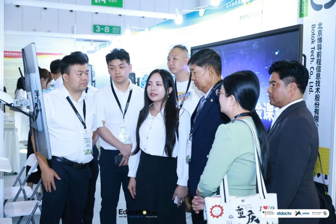 在本次活动同期展会上,博导股份携多款融合前沿技术的教学创新产品亮相,全面推出人工智能技术应用(微)专业、数字教材、AI赋能专业(群)数智化发展建设等服务方案,集中展示了面向泰国、菲律宾、老挝等国所开展的国际合作项目成果。展览过程中吸引了大量海内外院校领导、教育专家及企业代表的驻足关注,观众们纷纷体验互动,对产品的前沿性、实用性与国际化特色给予好评。