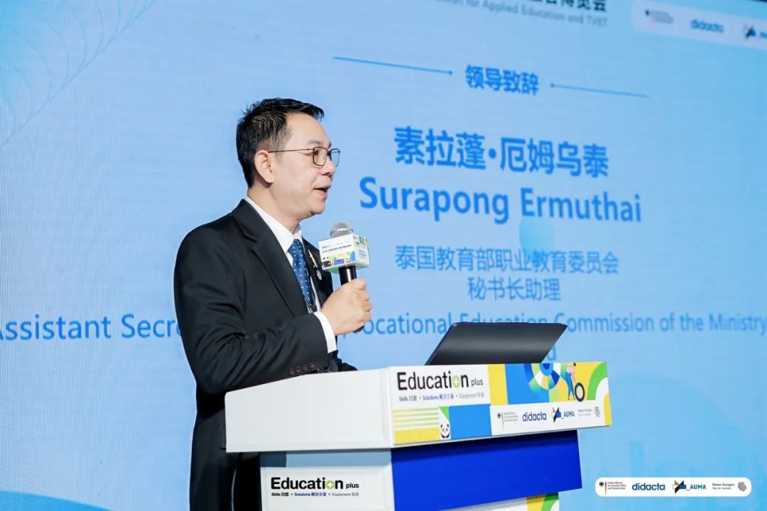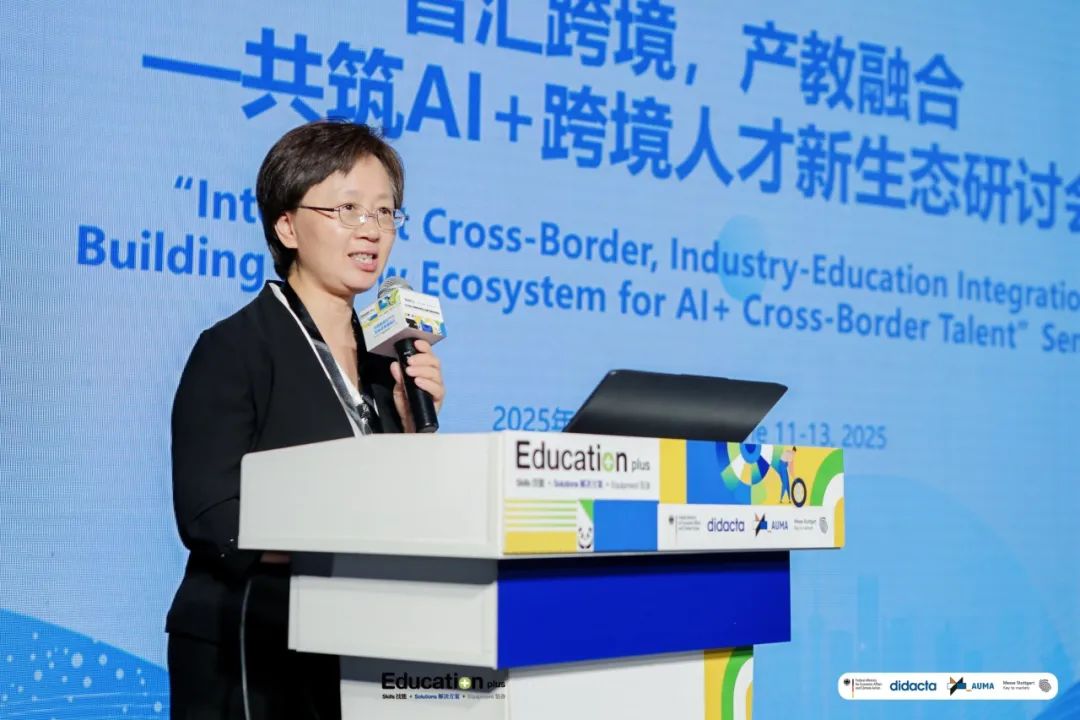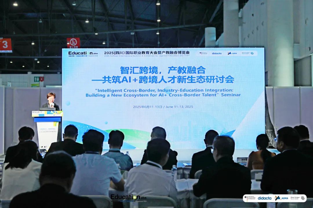 “智汇跨境,产教融合——共筑AI+跨境人才新生态研讨会”为EducationPlus 2025(四川)国际职业教育大会暨产教融合博览会(简称“EducationPlus”)的同期平行会议。EducationPlus由四川省教育厅、德国联邦经济事务和气候行动部等重量级单位联合指导,德国斯图加特展览集团中国公司主办,已成功举办八届。本届活动以“发展新质生产力,赋能教育国际化”为主题,汇聚行业头部企业,展示国内外产教融合前沿技术与案例,吸引了来自德国、印度尼西亚、泰国、菲律宾、匈牙利等十多个国家的产教优质资源参与。