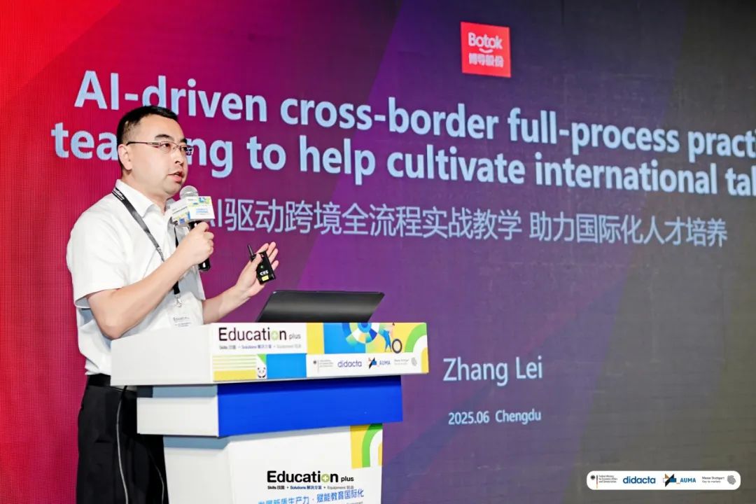 博导股份副总裁张磊介绍了Botok以AI赋能跨境电商人才培养的服务体系核心特色。博导股份基于26年教育服务技术沉淀,推出Botok Class国际化智慧教育平台、跨境电商综合实战平台、跨境电商多平台运营实训等国际化实践教学产品,将传统跨境电商技能升级为“技术理解+AI运营+全球化视野”的复合能力模型,以AI驱动跨境电商全流程实战教学,推动跨境电商人才培养创新发展。