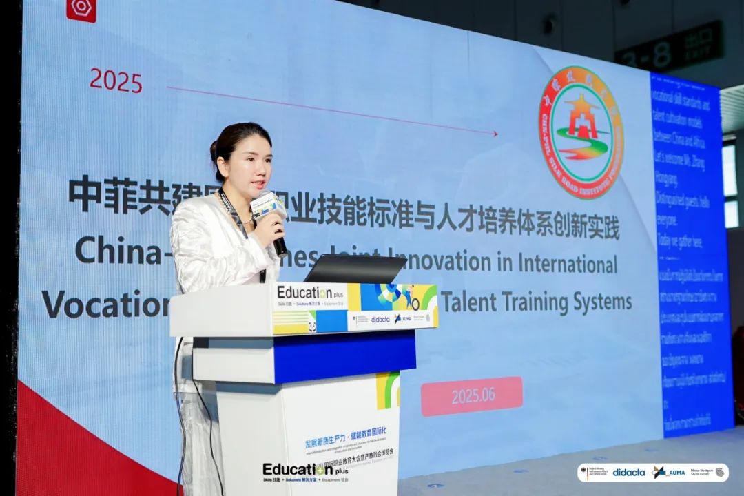 中菲丝路学院基金会主席张红阳介绍了中菲共建国际职业技能标准与人才培养体系的合作项目实践。2023年,中菲丝路学院基金会与全国电子商务职业教育教学指导委员会,菲律宾职业技术教育培训联合会正式签署合作协议,共建电商谷马尼拉国际合作中心,成功推动菲律宾技术教育与技能发展署(TESDA)认证首批中方开发的电子商务运营职业技能标准;同时联合博导股份、菲中科教等企业组织中国职业院校开发88项菲律宾国家职业技能标准。在此成果基础上,菲方正式提出设立“菲律宾职业教育课程体系开发与建设项目”,将双方合作范围扩展至网络安全、现代家政服务与管理、汽车技术、铁路技术、航空技术、水上运输、家庭护理管理、体育管理、电子商务运营和物流管理等十大菲律宾优先发展产业领域,将组织中方院校开发符合TESDA认证技能,且与菲律宾高等教育委员会(CHED)本科相衔接的学历课程体系。