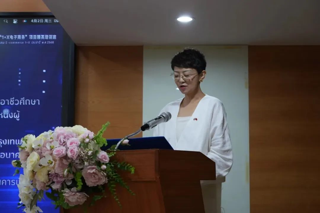 中华人民共和国驻泰王国大使馆一等秘书王欢、泰国教育部职教委教师与人员能力发展办公室主任蒂蒂玛·罗詹瓦查拉皮班、清迈大学孔子学院中方院长连晨、北京博导前程信息技术股份有限公司董事长段建等嘉宾出席开班仪式并致辞。