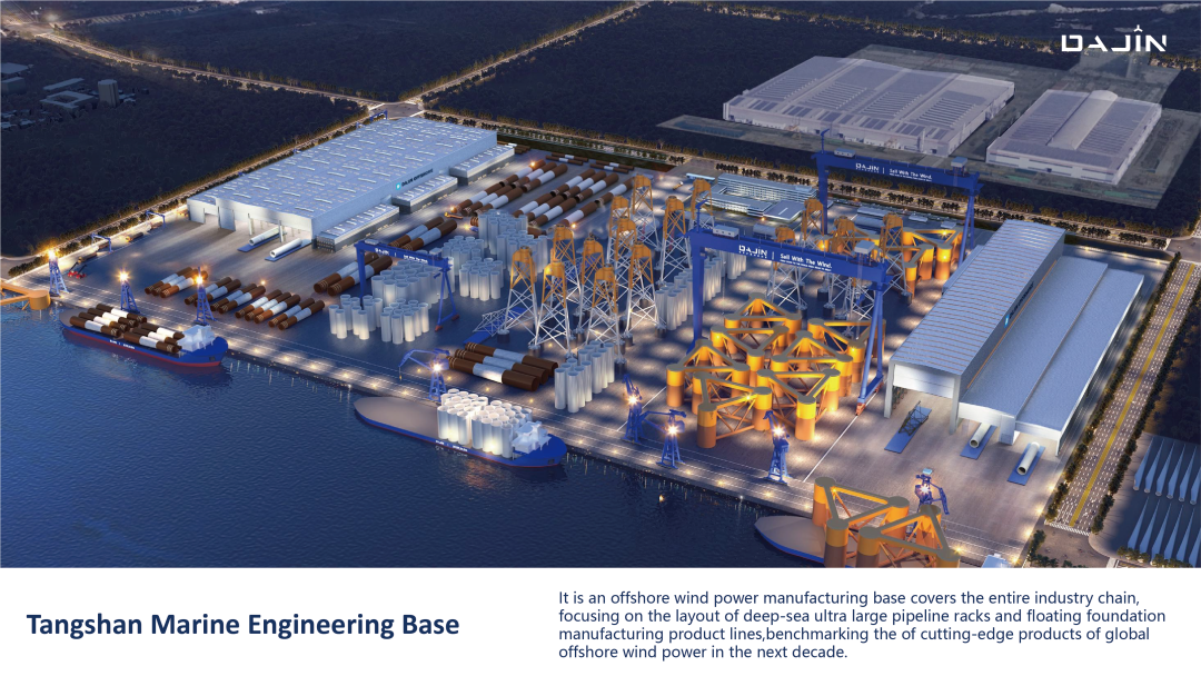 大金重工在国内已建成6个生产基地,拥有2个大型专业化码头。目前正在建设并将于今年投产的唐山基地,占地面积130公顷,岸线长达1.2公里,50%以上设备为自主定向研发,拥有海工领域全球最大合拢车间,可实现超大分段的室内建造,唐山基地可为未来10年全球海上风电发展提供一流品质的产品,通过大规模、高效生产制造,能够有效降低浮式风电开发成本,大金将致力于成为浮式风电开发的解决方案提供者,携手与海上浮式开发企业共同推进行业进步。目前,大金重工运营的风光电场项目总计500MW。截止2024年底,累计发电11.02亿千瓦时,等效减少碳排放约59.13万吨,相当于54.2万户家庭的全年用电需求。公司在建设风场项目1GW,计划于26年底并网发电,这些项目每年将提供近34亿千瓦时的绿色电力,减少碳排放约182万吨。实践印证了大金重工的理念:通过技术创新与项目运营的深度融合,为全球能源结构转型贡献可量化的环境价值。