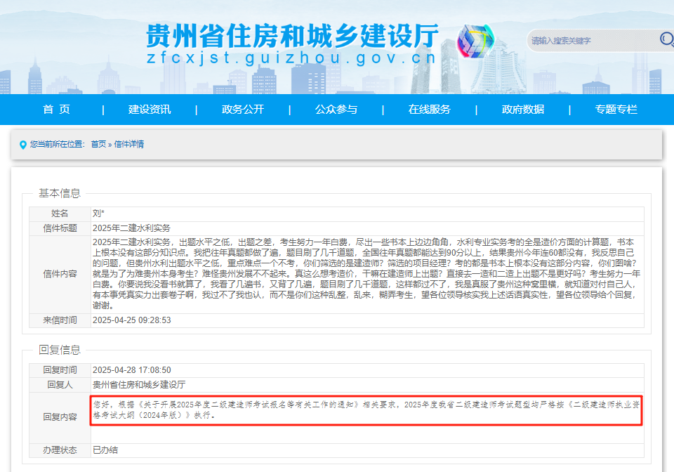 还有考生到住建厅留言吐槽:出题水平之低、出题之差,考生努力一年白费,尽出一些书本上边边角角……