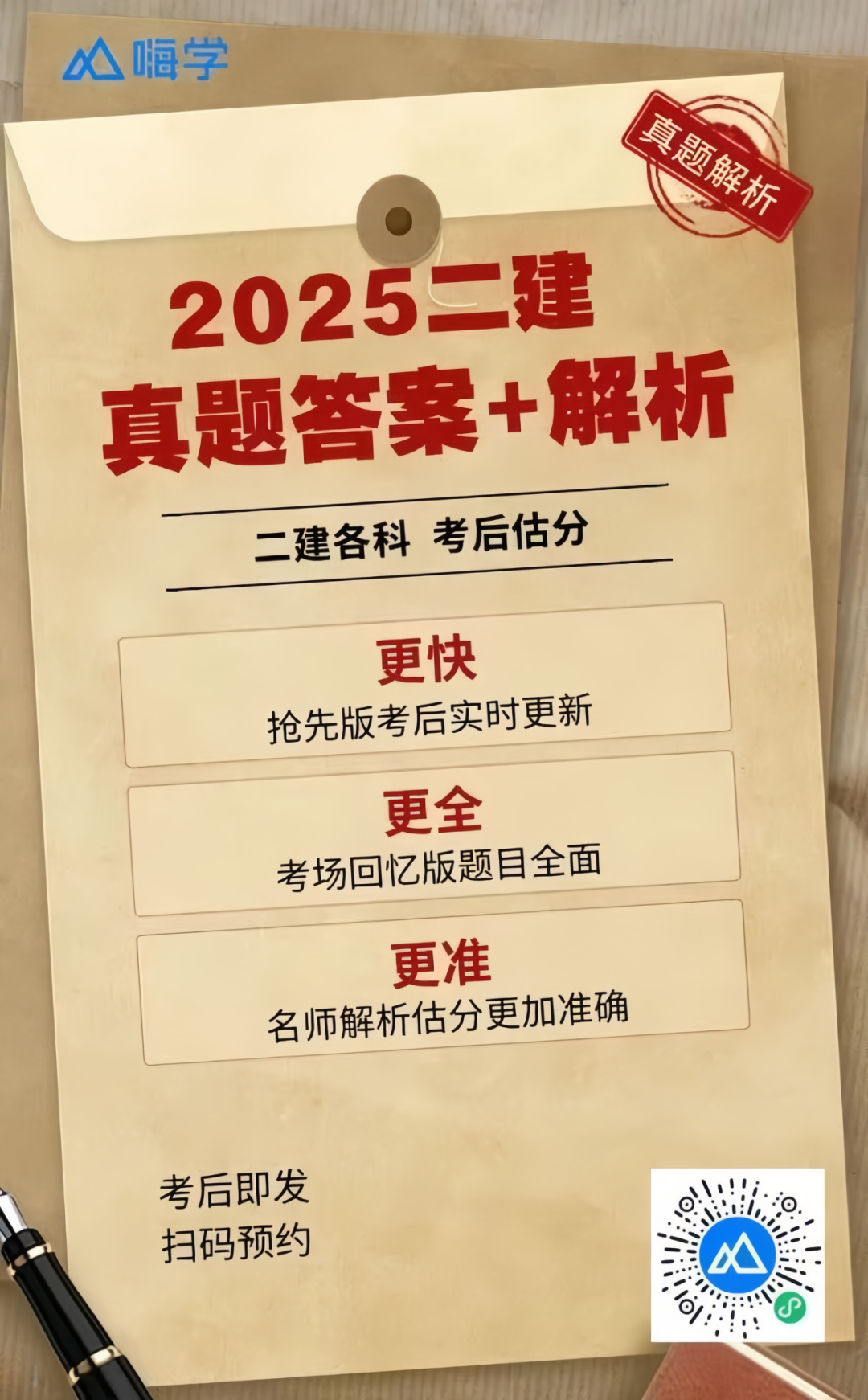 难度中规中矩,考点基本都是书上内容,例如:选择题涉及建筑结构体系与可靠性、建筑物分类、混凝土及组成材料性能等基础内容;案例题围绕施工组织设计、合同管理、技术交底、安全管理等核心板块展开。常规高频考点占比超过60%,只要认真刷过历年真题、消化掉嗨学老师讲的高频考点,基本没问题。