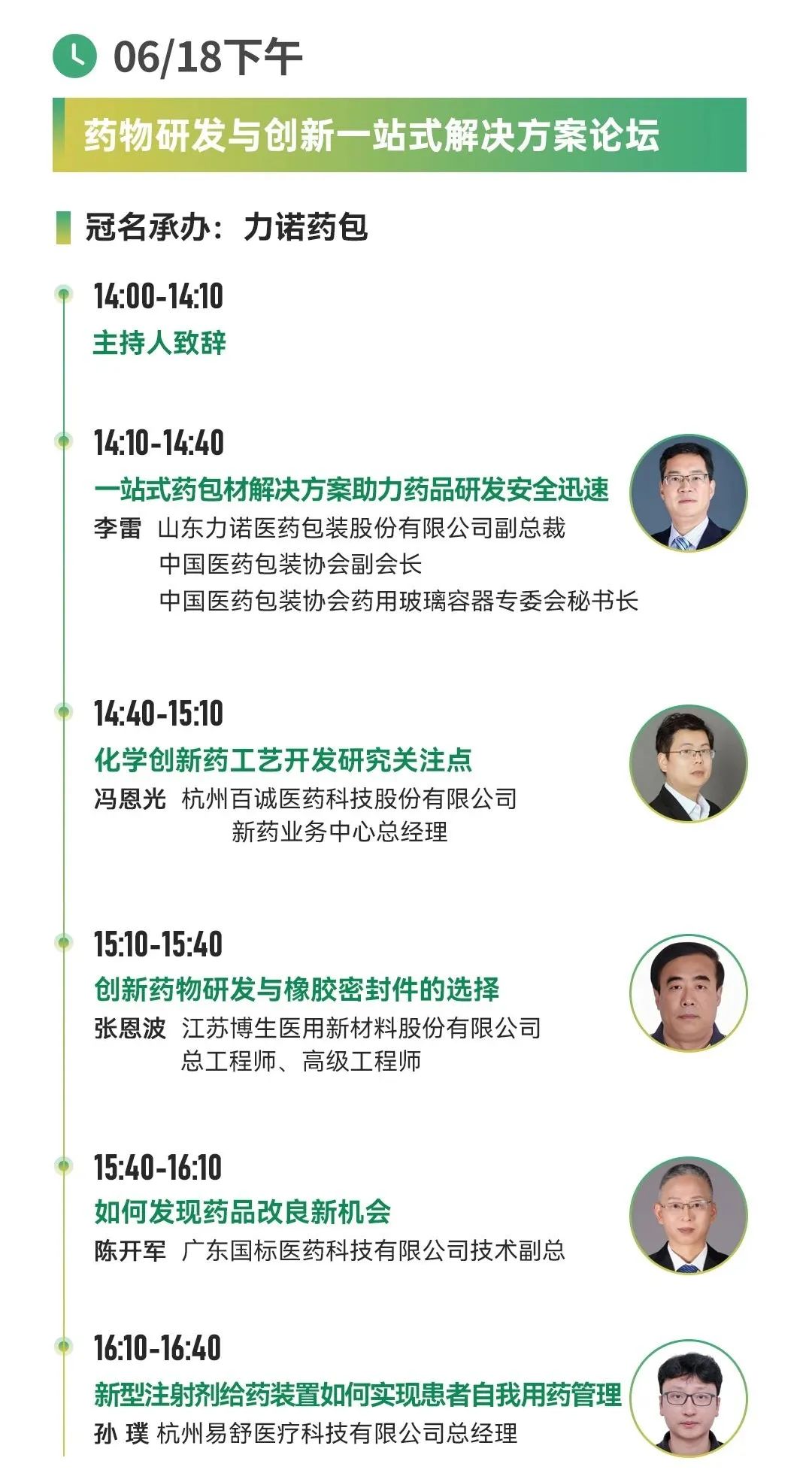 6月18日-19日,力诺药包将亮相在杭州举办的中国药品CXO百强峰会+医药项目交易大会,我们诚挚邀请您莅临现场,了解我们的一站式医药包装解决方案,参加力诺药包专场“药物研发与创新一站式解决方案论坛”,探索新的市场和机会,进一步加强交流合作。