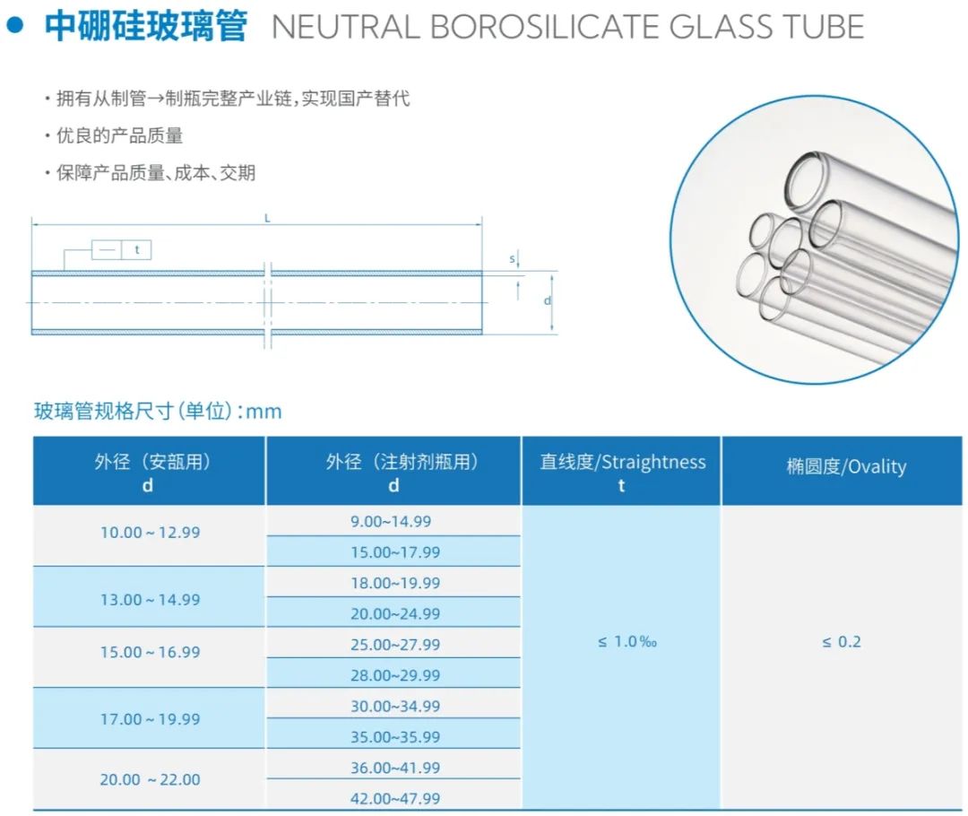 ●同时拥有中硼硅、低硼硅药用玻璃管生产线,实现制管→制瓶完整的产业链
