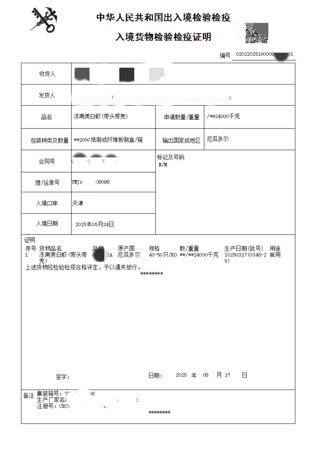 扫描《入境货物检验检疫证明》二维码,即可在手机端查看电子证明信息。