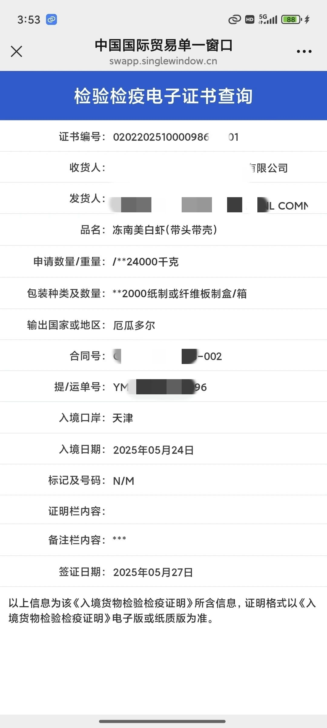 单一窗口《入境检验检疫证明》查询