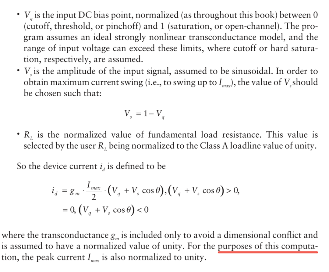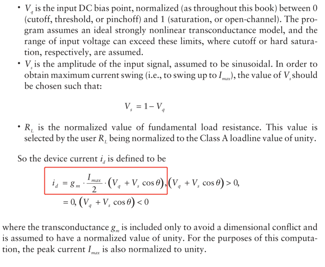 Q:打扰一下在《RF Power Amplifiers for Wireless Communications》书中,为啥会有Imax/2?没看懂这个公式, 有知道的同学,麻烦抽空指点一下,谢谢啦。p47。