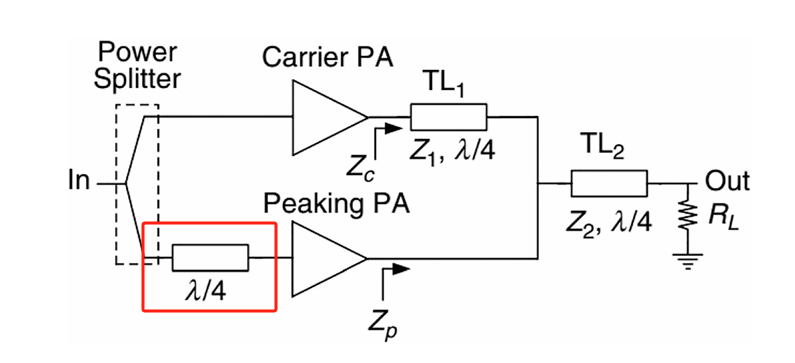 Q:请教大家一个问题 对于Doherty PA 如果在辅功放输入端用1/4波长线作为相位补偿的话 在辅功放关闭状态下 辅功放的栅极呈现高阻抗 经过1/4波长线后变成低阻抗 请问为什么在输入功率比较低的时候,信号经过功分器不走低阻抗的辅功放而走主功放呢?