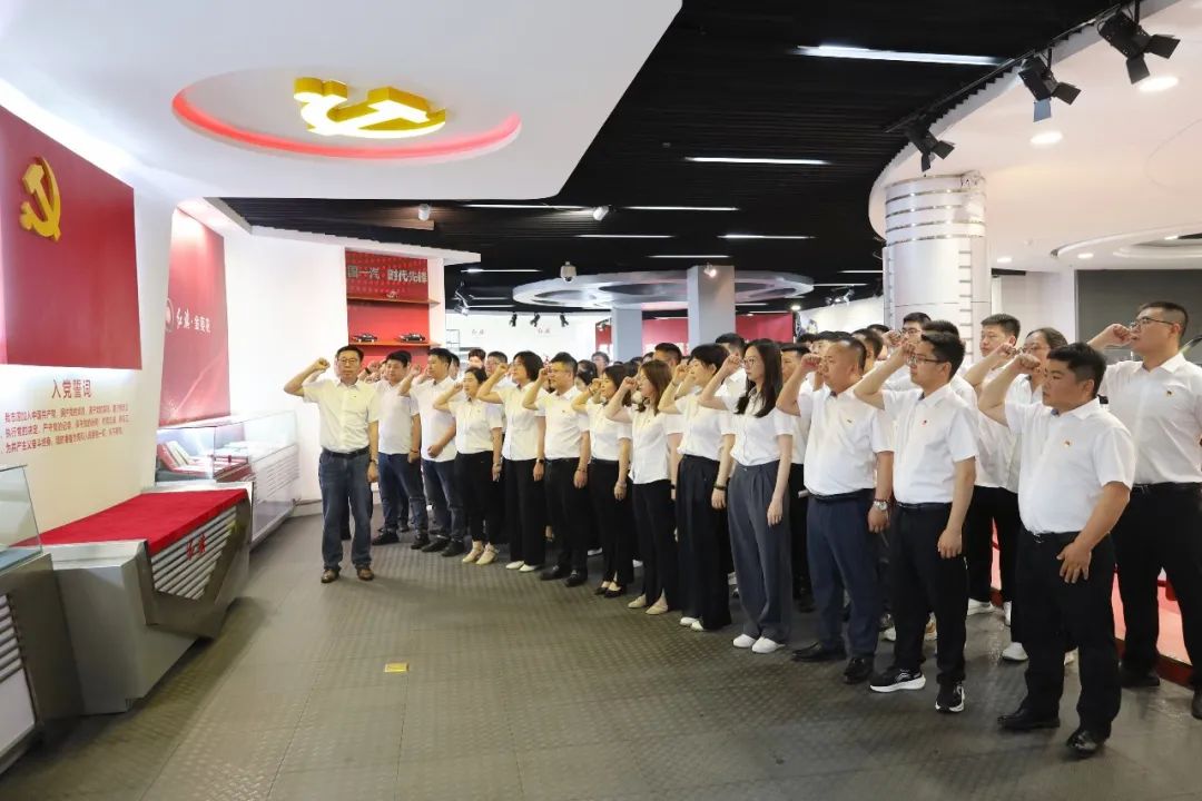 参观结束后,在党总支书记张宏军的带领下,全体党员在展馆内的党旗前整齐列队,庄严地举起右拳,重温入党誓词。这不仅是对入党初心的再次铭记,更是对使命担当的郑重承诺,激励着党员同志们从红旗品牌发展历程中汲取精神力量,转化为立足岗位、干事创业的实际行动。
