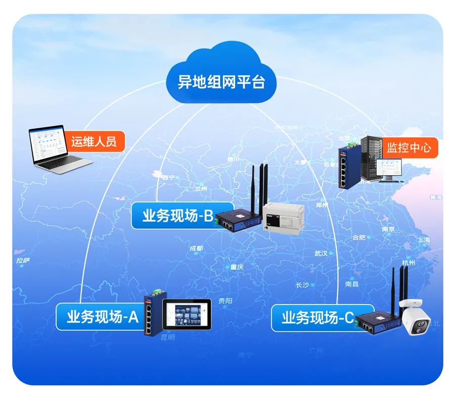 2、链路层组网(二层):跨地设备相当于接入同一个交换机组成大局域网,数据交互如本地直连;
