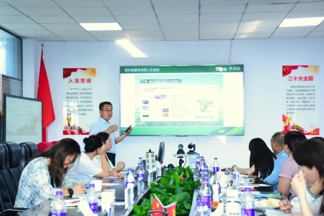 在随后举行的座谈会上,现代牧业向调研组系统介绍了集团可持续发展战略与实践成果,重点阐述了在生物多样性保护及双碳管理领域的成效,并详述了双城牧场的低碳运营实践。目前,双城牧场青贮玉米种植基地配套施用牧场自产沼肥,待作物达到质量标准后由公司统一回购,成功构建了“牛—沼—草”绿色农业循环经济模式。