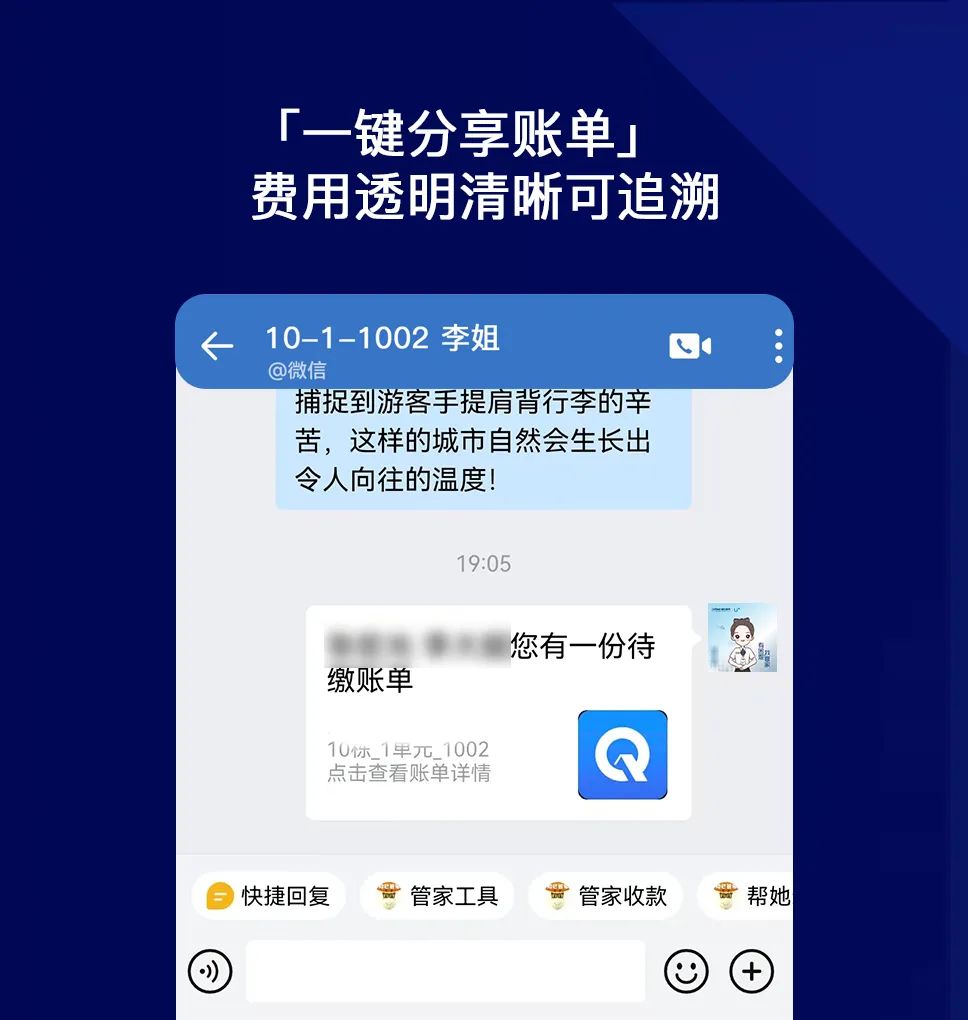 我们通过将企业微信与账单系统打通,让每笔物业费账单都清晰可追溯。