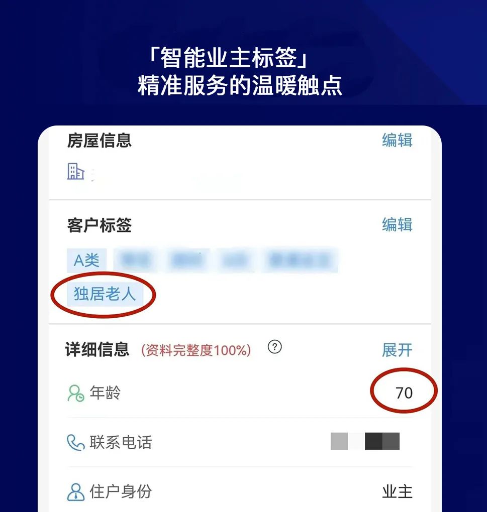 再比如,针对「独居老人」标签业主,秩序巡逻,监控室值班都会重点关注,避免出现灶台忘记关火引发火情等危险事故发生。