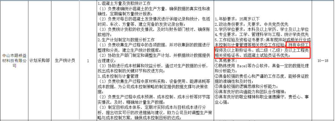 小优今天又来发招聘了呦~中山市路桥建设有限公司面向社会公开招聘12人,持有一造、二造证书的小伙伴快来看看吧~