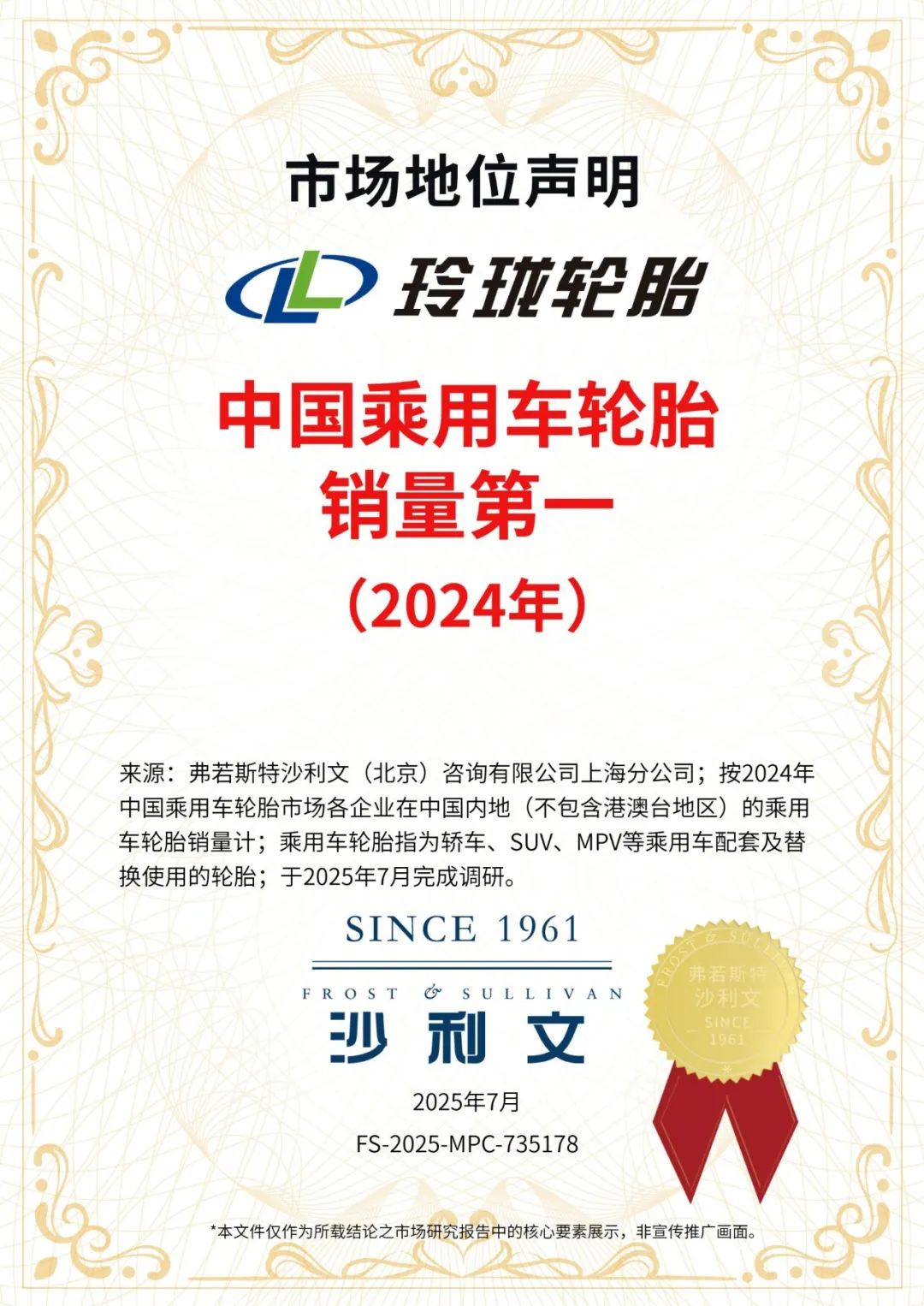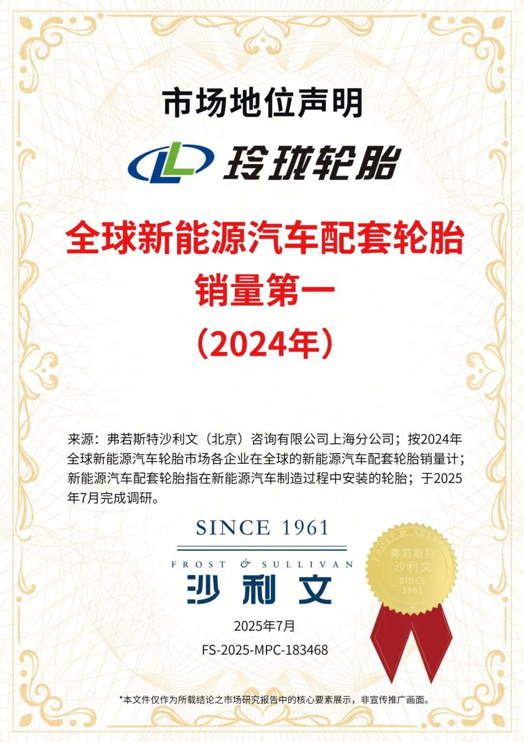 连续两年获得“双第一”市场地位认证,是玲珑综合竞争力与市场领先地位的权威背书,这一成就彰显了玲珑以技术创新驱动发展、以品质服务赢得市场的战略定力,更标志着中国轮胎品牌正在全球新能源赛道上实现从“追赶者”到“领跑者”的历史性跨越。