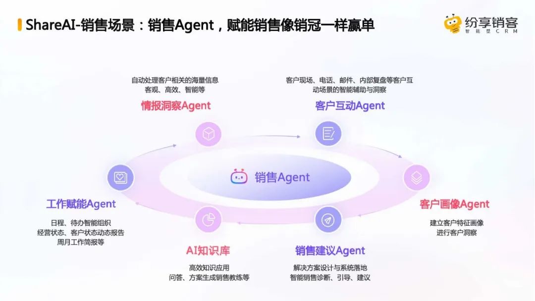 在具体业务场景中,纷享销客的智能体正在重塑传统 CRM 的价值创造方式,每一个智能体的背后都是对业务场景的深度解构与智能化重构。