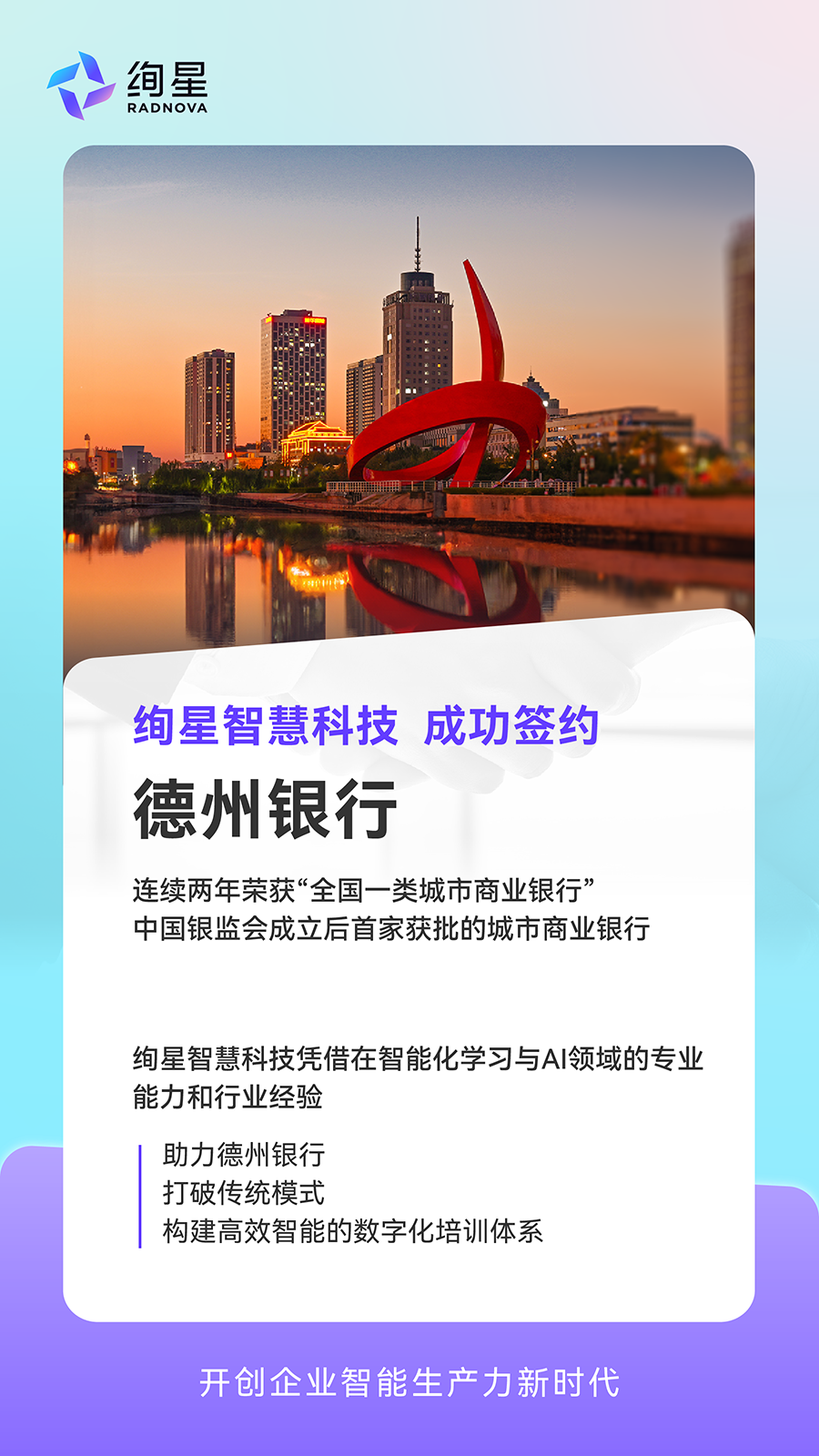近日,德州银行与绚星智慧科技达成战略合作,双方携手打造一体化数字化培训平台,旨在提升培训管理效率,优化人才培养模式,推动培训向数字化、体系化迈进。